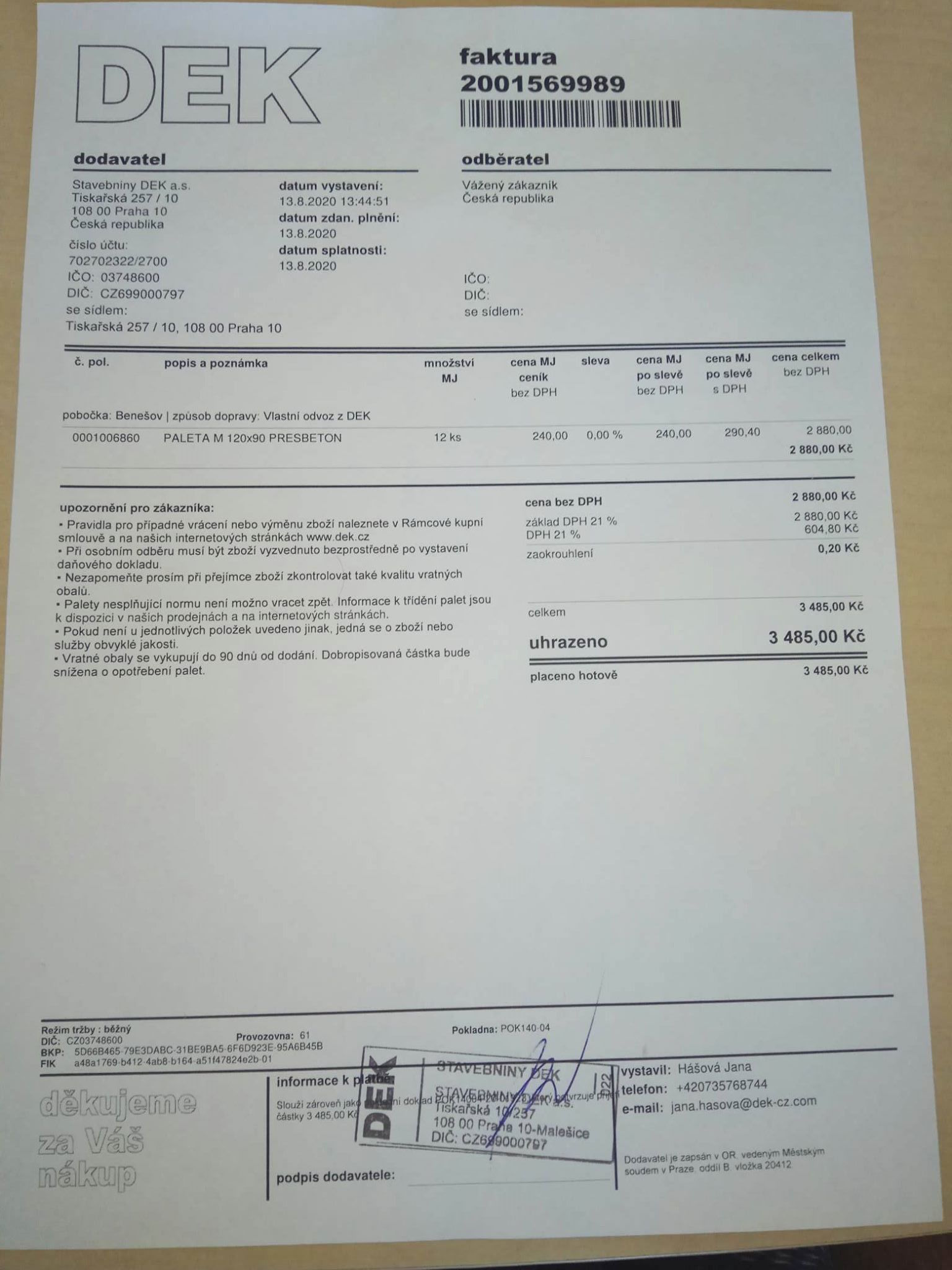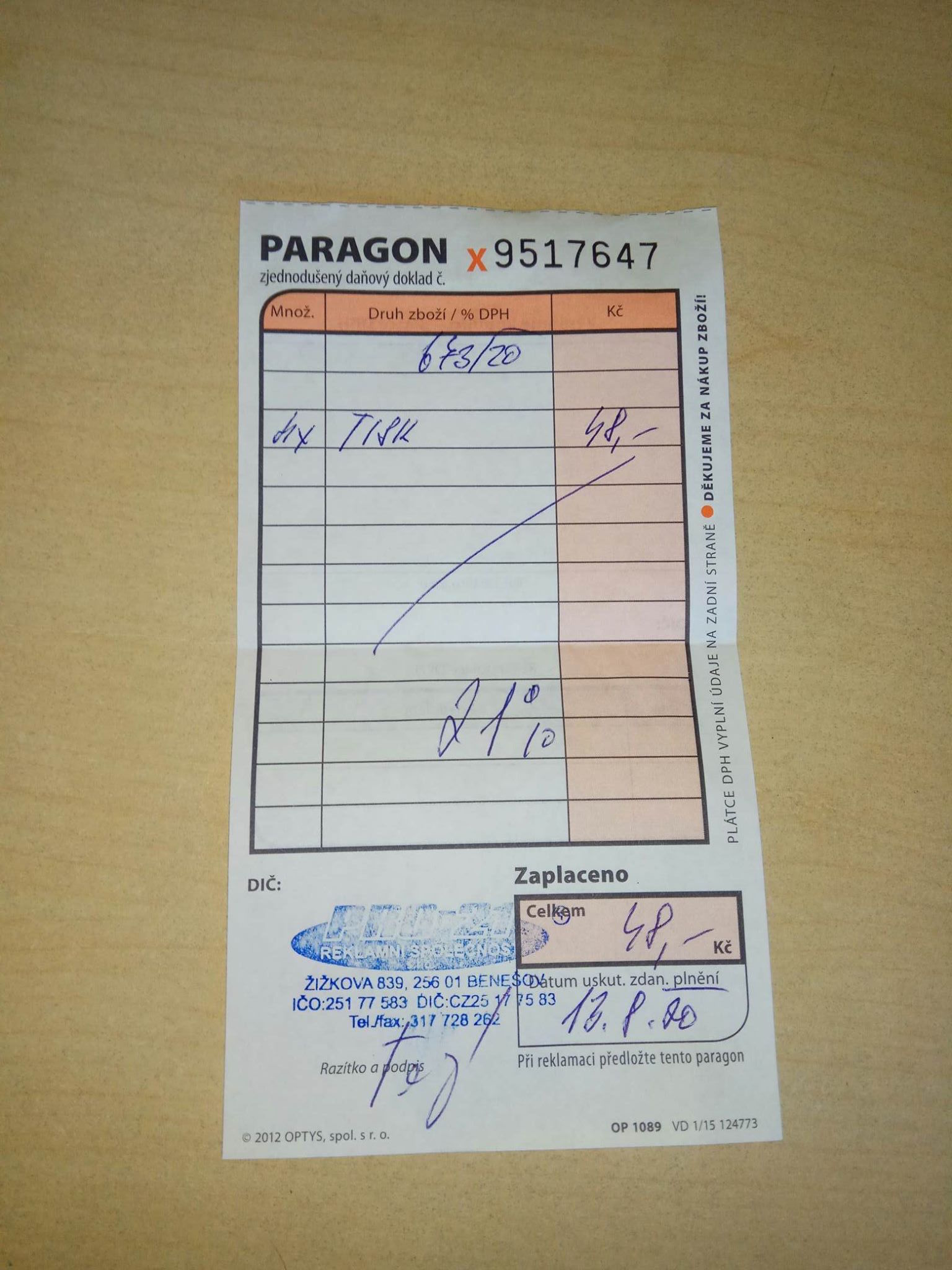 | Potvrzeno proplácečem | Aleš Krupa (ales.krupa) (25.8.2020 15:14) |