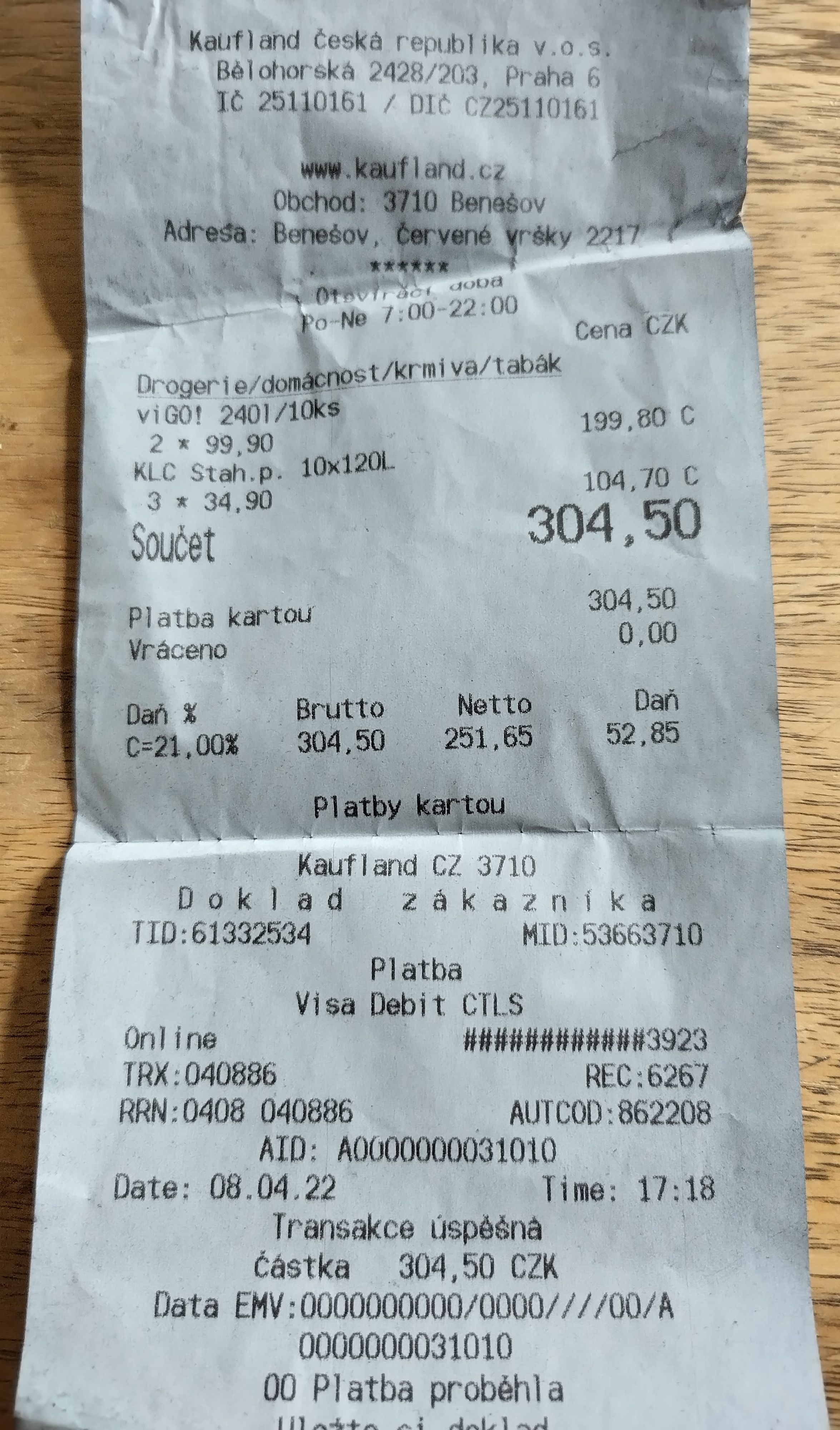 | Příjemce | Kaufland Česká republika v.o.s. |