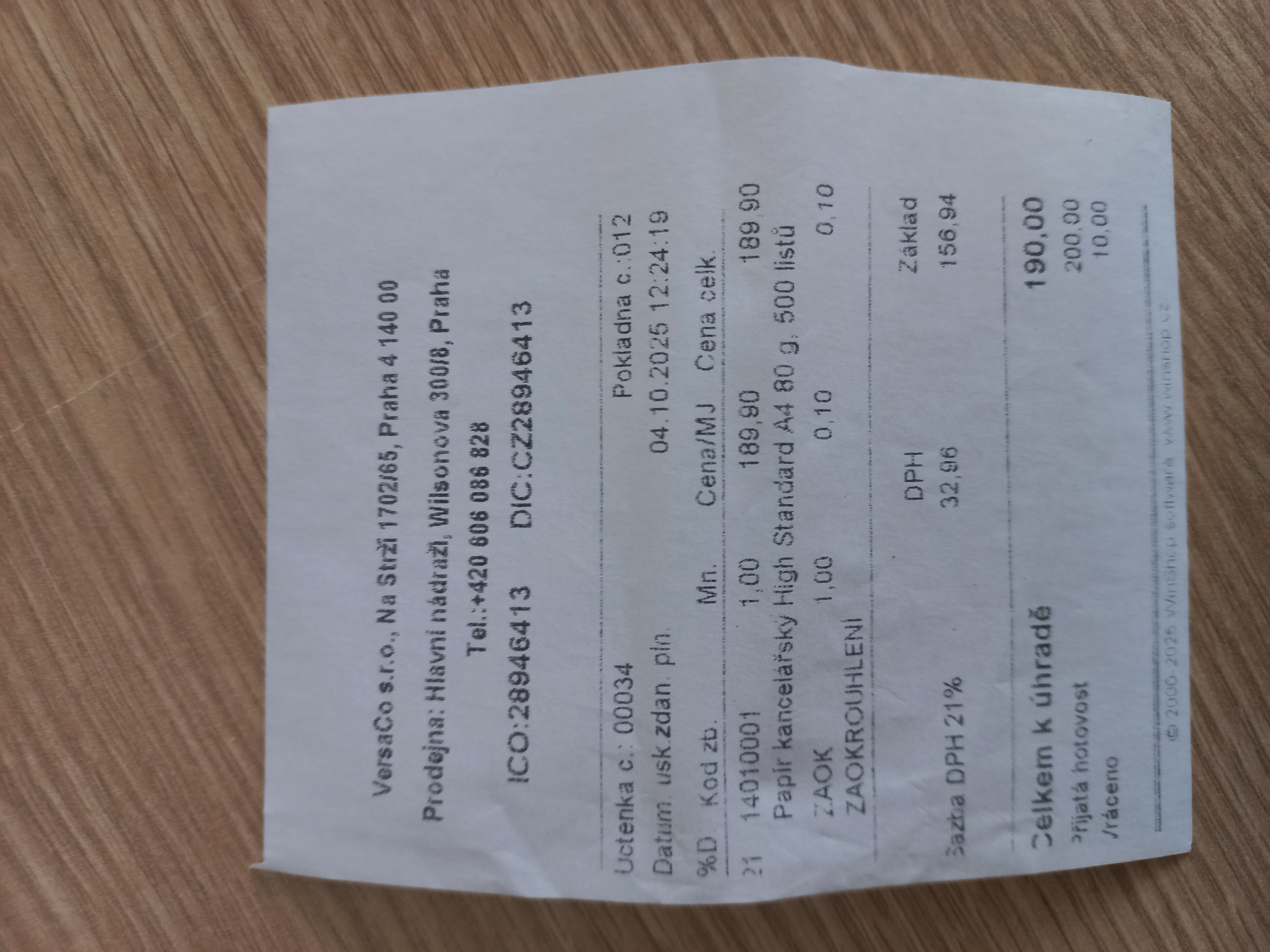 | Příjemce | VersaCo s.r.o. |