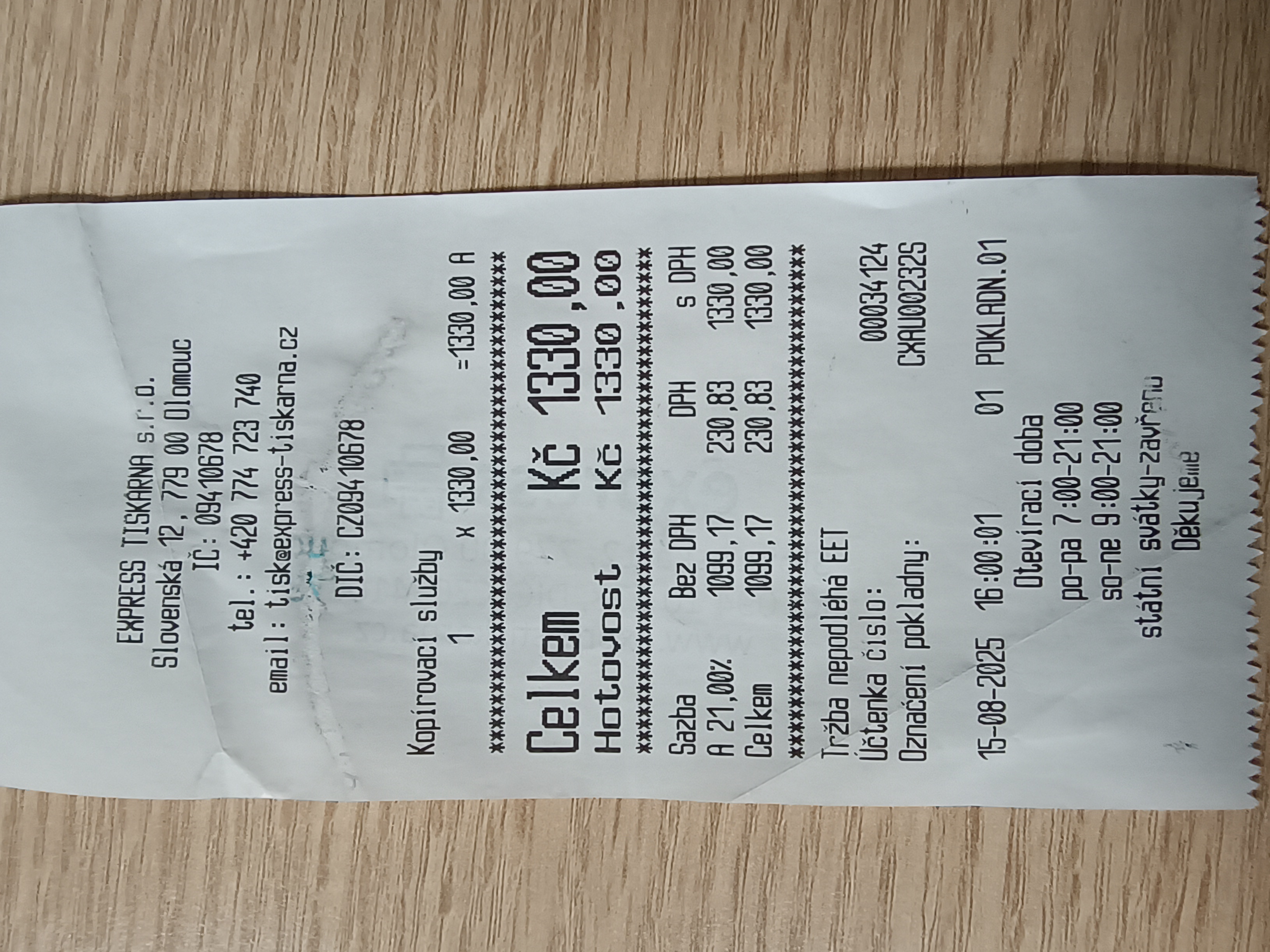 | Příjemce | Express Tiskárna s.r.o. |